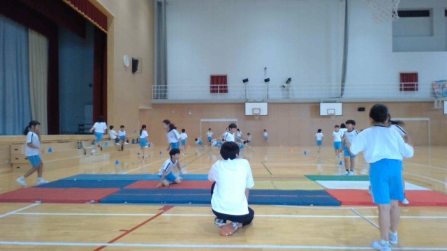 4年生は、学習発表会「Let'sシンクロマット~心を一つにStep Up~」に向けて、動画を見返しながらチームで話し合い、動きやタイミングを工夫して練習を重ねています。仲間と意見を出し合い、よりよい発表を目指しています。