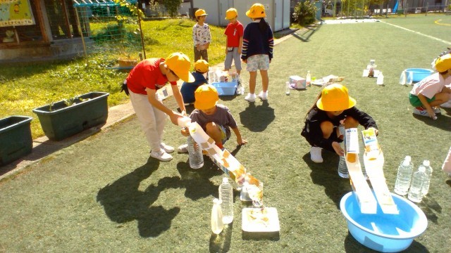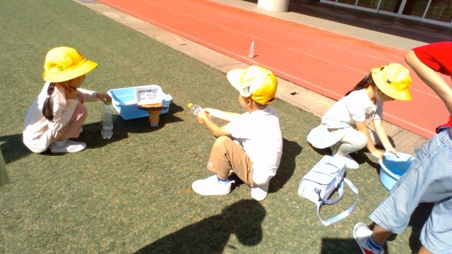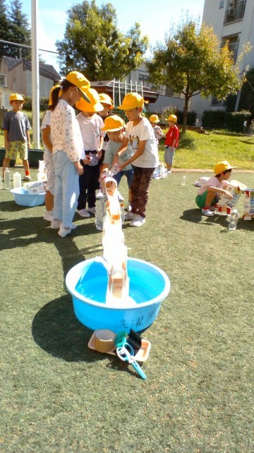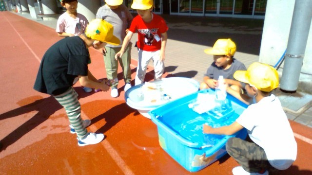 生活科「みずであそぼう」の学習で、子供たちは、お客さんに楽しんでもらえるようにおもちゃを改良してきました。今日は、たくさんのお客さんに、自分でつくったおもちゃで楽しく遊んでもらえて、大満足の子供たちでした。