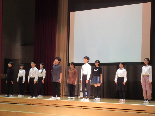 総合的な学習の時間で学んだことや、「ふるさと富山を命がけで守ってくれた先人たちの努力や思い、自分たちの未来に向けての決意を劇と歌に込めること」を意識して、本番に臨みました。子供たちは、今までの練習の成果を十分に発揮し、一人一人が輝く最高の発表となりました。特に合唱では、全員が心を1つにして歌う姿が見られました。