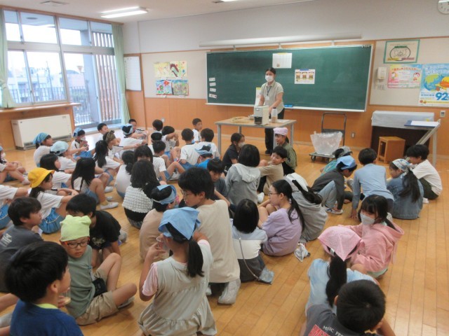 子供たちは、玄米を精米して白米にする工程を見学しました。
