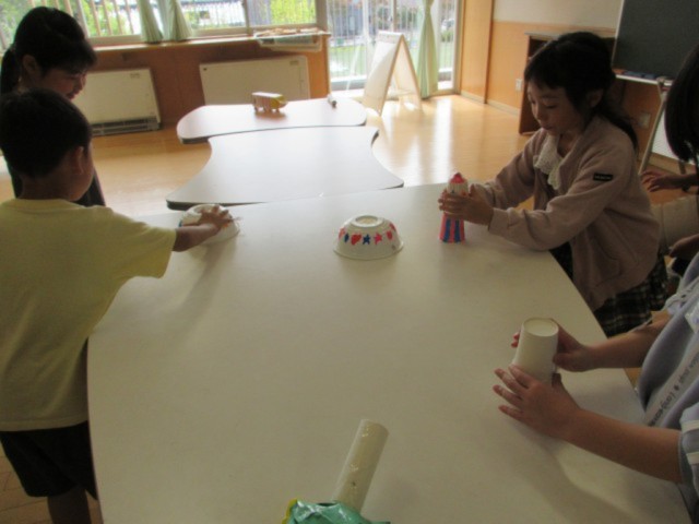 生活科では、「つくってあそぼう うごくおもちゃ」の学習を進めています。自分の作りたいおもちゃを作ろうと、自分で考えたり友達と相談したりしながら、楽しく作っています。出来上がったおもちゃがうまく動くか確かめ、試しては改良してを繰り返しながら、おもちゃのパワーアップを目指しています。