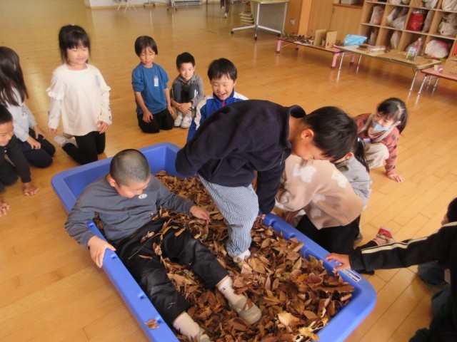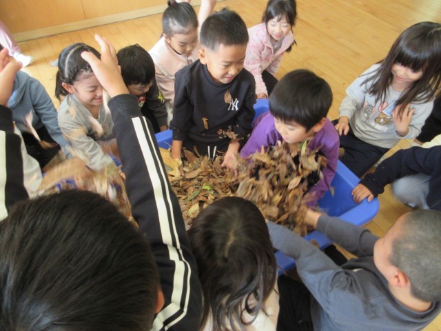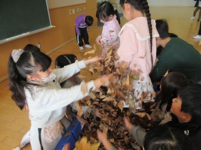 カサカサという音やふわふわの触り心地を楽しみながら、秋を感じました。