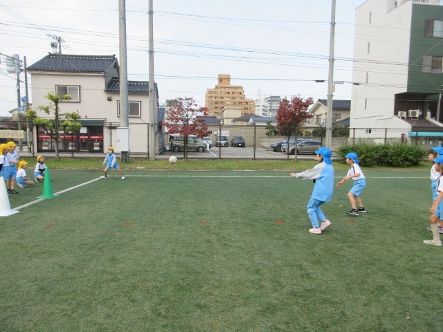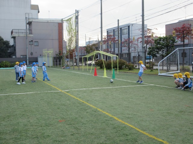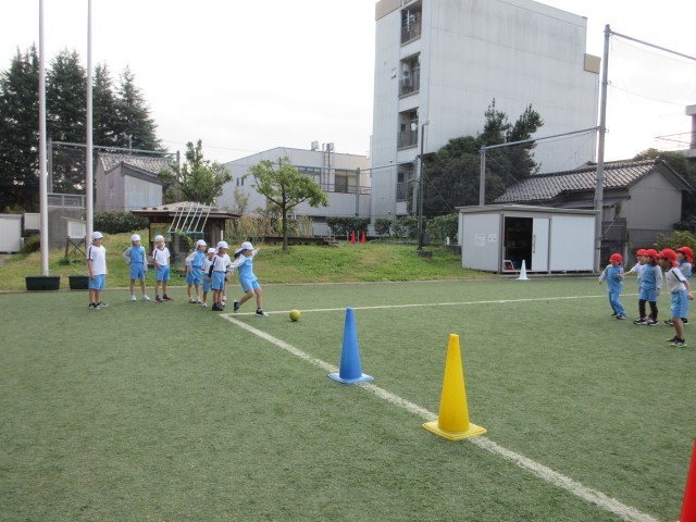 体育科では、ならびっこキックベースの学習が始まりました。この日は初めての学習だったため、みんなでルールを確認しながら試しのゲームをしました。攻撃側はボールを蹴ってコーンを回り、守備側はボールを取って一列に並んで座ります。守備側が並んで座るよりも前にホームに戻って来られたら、点数が入ります。より遠くのコーンを回るほど、点数が高くなります。みんなでルールを守りながら、作戦を工夫して学習を進めていく予定です。
