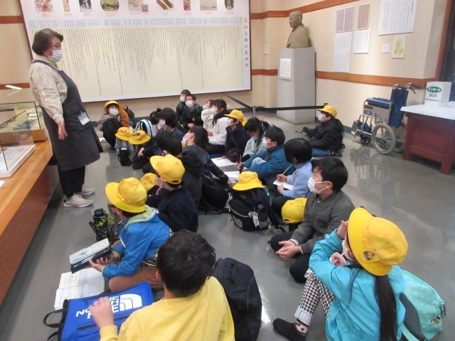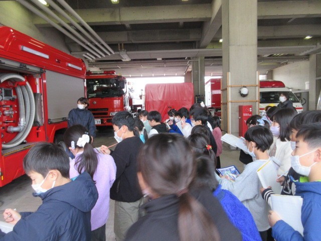 3年生は社会科見学で、源ますの寿司ミュージアム、富山市民俗民芸村、富山市消防局に行ってきました。源ますの寿司ミュージアムでは、ますの寿司をつくっている様子を実際に見学したり、気になったことについて質問したりしました。富山市民俗民芸村では、昔の人々のくらしについて学びました。富山市消防局では、消防車や救急車の中を実際に見たり、119番通報を体験したりしました。