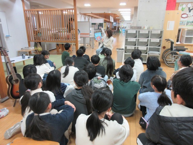 5年生では、ひだまりの会さんの読み聞かせがありました。感動的なお話に心が温まりました。今年のうちにたくさんの本を読みたいですね。