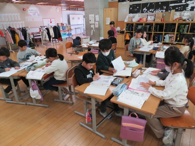 算数科「かけ算」の学習で、九九を活用して様々な求め方を考えました。自分でいくつか考えた後、班で交流しました。囲み方や移動の仕方によって、式が異なるので、友達がどんな考え方をしたのか、興味津々でした。