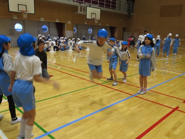 校内縄跳び大会(長縄部門)が行われ、子供たちは記録更新に向けて一生懸命に取り組みました。これまで、体育の授業や朝の時間、休み時間を利用してたくさん練習に励んできた子供たち。どの団も仲間と声を掛け合いながら精一杯の力を発揮し、最後はやり切った達成感に溢れていました。
