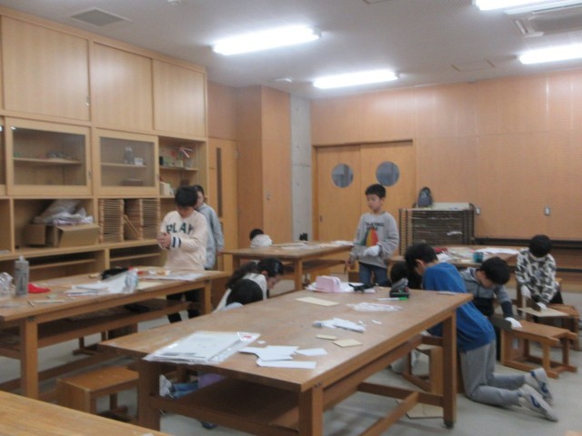 4年生 のこぎりギコギコ(図画工作科)