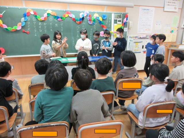 2学期最後のお楽しみ集会を開きました。各クラスで、それぞれの係からの出し物をみんなで楽しみました。
