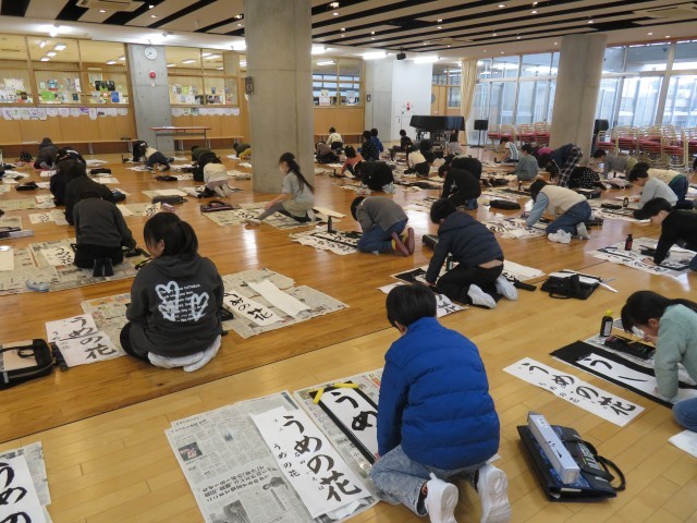 「校内書初大会」が行われ、3年生は「うめの花」という字を書きました。字のバランスや太さを意識しながら丁寧に書いていました。今日から3学期が始まりました。気持ちを新たに、4年生に向けてさらにパワーアップする3学期にしたいと思います。