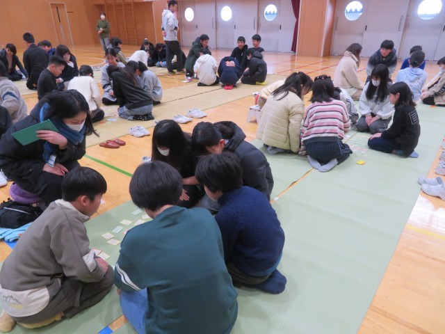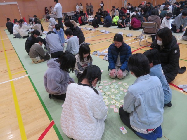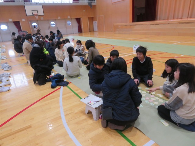 5年生は、かるた大会で百人一首に取り組みました。昨年よりも札が増えましたが、読み手の方の声をよく聞いて、最後まで集中することができました。6年生では、もっとたくさんの札を取れるといいですね。