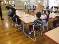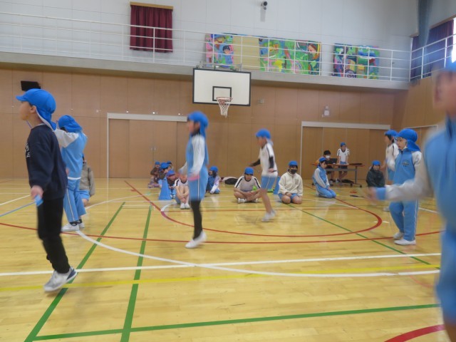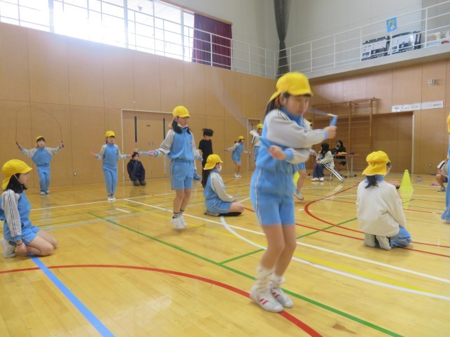 校内短なわとび大会が行われ、自分がエントリーした種目で1分間に何回跳べるかを計測しました。寒い中でしたが、子供たちは自分の記録更新を目指して、一生懸命に跳んでいました。