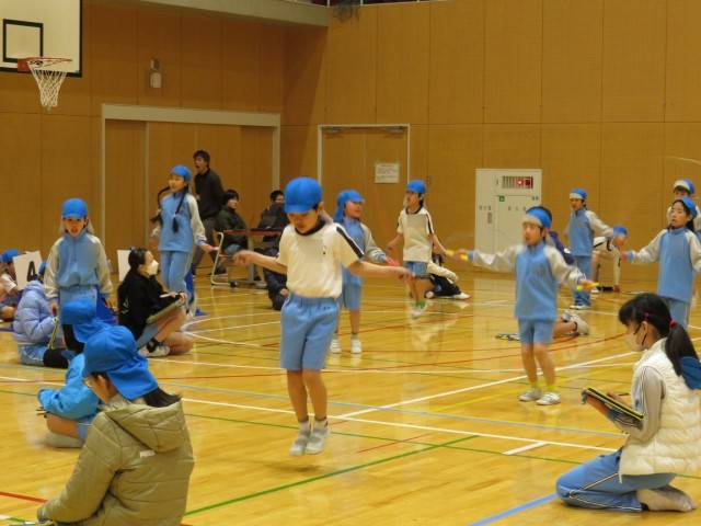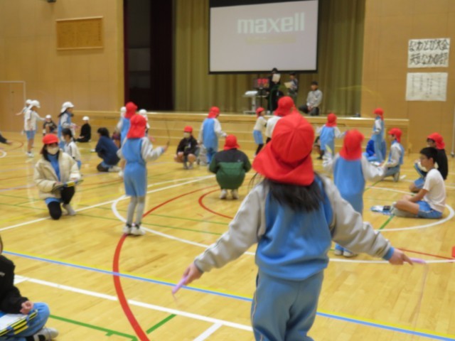 なわとび大会が行われました。子供たちは、駆け足跳び・前跳び・あや跳び・二重跳びから自分が選んだ種目で一生懸命取り組んでいました。