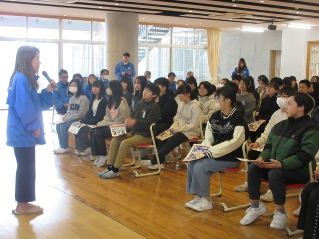講師の方とライオンズクラブの方が来校され、薬物の恐ろしさについて詳しく教えていただく、薬物乱用防止教室が開かれました。保健の授業で学習したことに付け加えて、薬による影響について学ぶことができました。改めて薬物は「ダメ。ゼッタイ。」と心に言い聞かせて生活していきたいと思います。