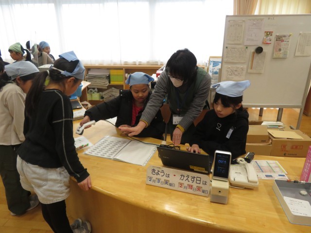 2月3日(火)は、5・6年生がスキー学習で学校を不在にしていたため、4年生が最高学年として学校生活を支える役割を担いました。5・6年生が普段行っている委員会活動の体験として、あいさつ運動や図書の本の貸し出し、給食時の放送などに取り組みました。子供たちは責任感をもって活動し、高学年としての自覚を高める貴重な機会となりました。