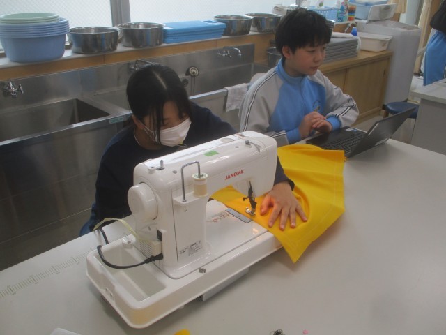 卒業プロジェクトの「学校へ恩返しプロジェクト」として、ミシンを使って、各教室で使用している大型モニターのカバーを作成しています。子供たちは家庭科の授業で学習した手縫いの仕方やミシンの使い方を振り返りながら、1つ1つ心を込めて作成していました。後日、6年生から各クラスにプレゼントする予定です。