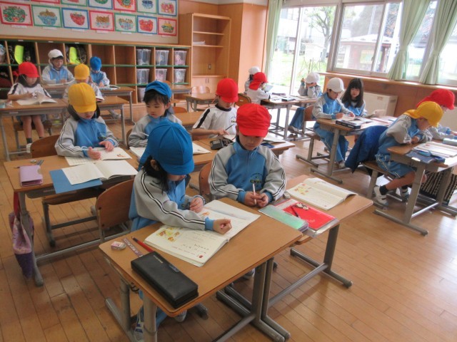 国語の学習では「ずうっと、ずっと、大すきだよ」の学習をしています。本文を読みながら心に残ったことを話し合ったり、読んで感じたことを友達に伝え合ったりして、お話のよさを味わっています。