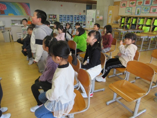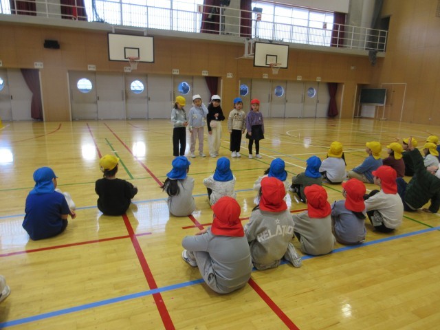 今日はお楽しみ集会を行いました。クイズやゲームなどの出し物に進んで参加し、子供たちは友達と協力しながら楽しい時間を過ごしていました。