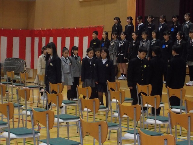 喜びの言葉では、小学校生活6年間の思い出を振り返り、教職員や地域の方々、保護者の皆様への感謝の気持ちを込めながら、1人1人が力強く言葉を述べました。また、全員の心を1つにして「変わらないもの」「旅立ちの日に」の2曲を歌いました。