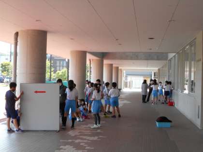 グラウンドでは、1・2年生が団体競技の玉入れの練習を行っていました。今年度も縦割り活動が難しい状況が続きますが、異学年が集まると上級生としての誇りと下級生の憧れの心が効果を発揮し、いつも以上に「ビシッ」としている感じがします。