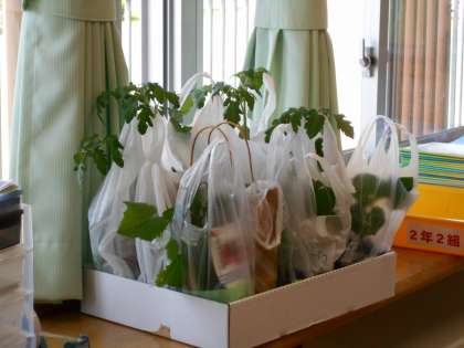2年生は、生活科の学習で育てる「自分のやさい」の苗をワクワクしながら持ってきていました。各家庭でのご協力、ありがとうございました。