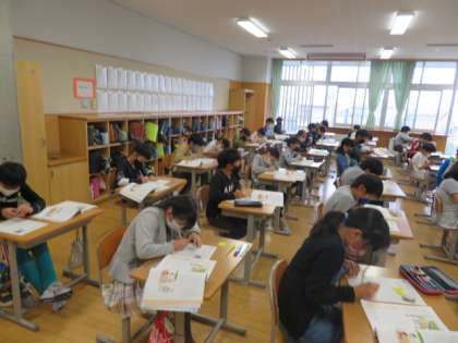 集中して振り返りを書いている様子です。