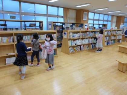 先週の雨の日、雨の中でも植物の生長を観察する子、図書室で本を楽しく選ぶ子を見かけました。