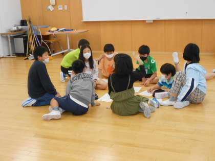 右は、5年生の野外自然体験で行う「森の家づくり」の計画の様子です。とても楽しそうでした。