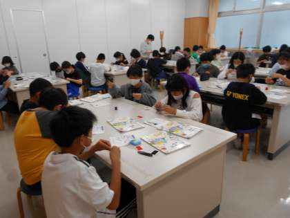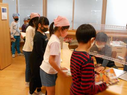 昨日は雨だったせいもあり、図書室は大盛況でした。5年生の家庭科では、針に糸を通し玉どめに挑戦していました。「あれっ?」「やったあ」といったドキドキの活動だったようです。