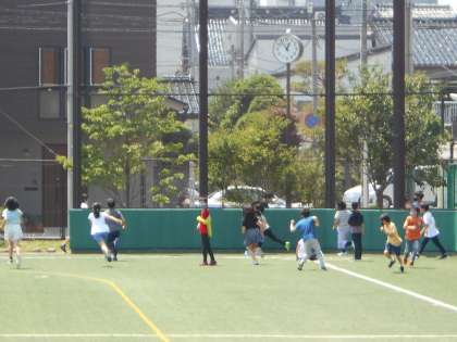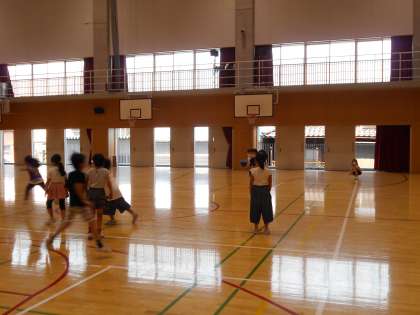 昨日の「なかよしタイム」では、グラウンドで鬼ごっこするクラス、体育館でボール遊びするクラスと楽しそうでした(中、右)。