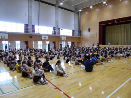 地震発生の避難訓練でした。放送をしっかり聞いて、安全に避難することができました。体育館への2次避難もとても速やかでした。