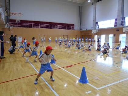 右の写真は、昨日の体力テストの様子です。どの子も記録を伸ばそうと頑張っていました。