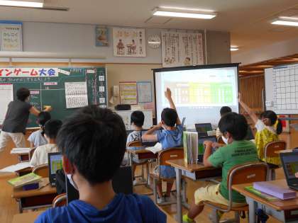 右の写真は、金曜日に行われた3年生の研究授業の様子です。「ゴールインゲーム」に使う車の動力であるゴムの特徴をとらえていった子供たちです。