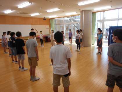 現在6年生有志が、ケーブル放送で「学び舎のうた」として流れる校歌の練習を頑張っています(右)