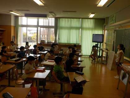 3年1組には転入生が仲間入り。さっそくうちとけています。3年2組では、楽しい雰囲気の中で、夏休みの思い出をスピーチしました。