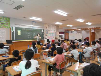 9月1日(水)、外国語科では、できること・できないことの学習をしています。「I can swim.」「I can't fly.」など、子供たちは進んで発音し、表現に慣れ親しみました。