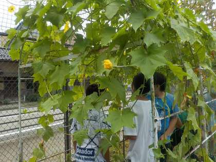 9月2日(木)、理科では「花から実へ」の学習をしています。今日はヘチマの雄花と雌花を観察しました。