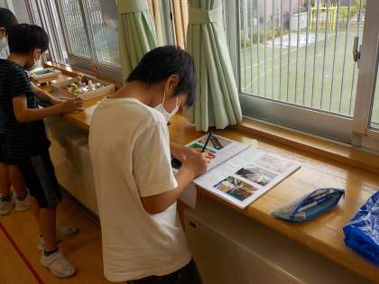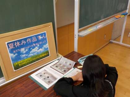 9月3日(金)、夏休み作品展の最終日でした。子供たちは友達の前で発表したり、友達の作品に付箋でメッセージを送ったりしました。