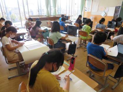 用紙にまとめたり、端末を使ったりと思い思いのまとめを頑張っていました。