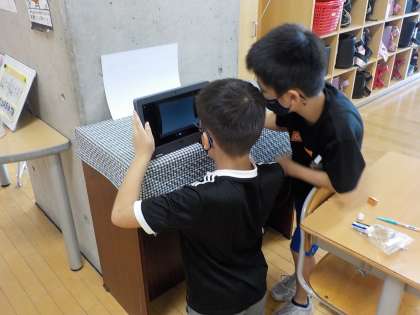 9月10日(金)、図画工作科では「形が動く絵が動く」の学習をしています。自作のキャラクターや絵がコマ送りで動いて見えるよう、工夫しながら一枚一枚写真を撮りました。