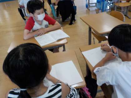 社会科の学習では「災害に備えるくらし」について学習しています。自分たちが避難をするとしたら非常リュックに何を入れるだろうか、ということについて斑で話し合い、各斑の非常リュックを考えました。