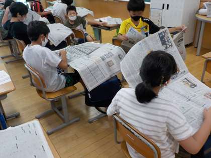 9月14日(火)、国語科では「新聞を読もう」の学習をしています。見出しや写真を一目見て、自分が気になる記事を選びました。