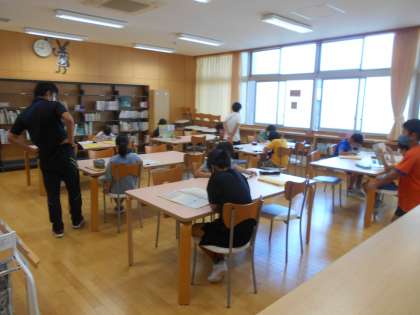 学校では、22日(水)の「読書フェスティバル」で行うビブリオバトルへの準備が進んでいます。お子さんは、どんな本を選んでいるのでしょう。聞いてみてください。図書室を覗くと、4年生は教科の学習に取り組んでいました。