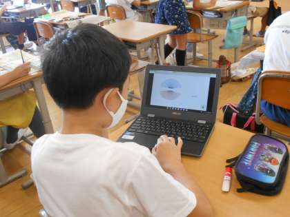 HPでも紹介してありますが、6年生の算数で円を○等分していく映像が「デジタルの力」と感心し、思わず写真を撮りました。