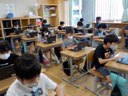 朝の時間に、学校保健委員会のオンライン集会後、端末によるアンケート入力を行いました。みんな日頃の姿勢について振り返りができたようです。
