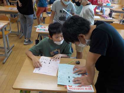 10月11日(月)、外国語科では道案内の学習をしています。ペアで道順を確認しながら目的地までたどり着くように会話を楽しみました。