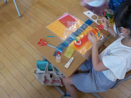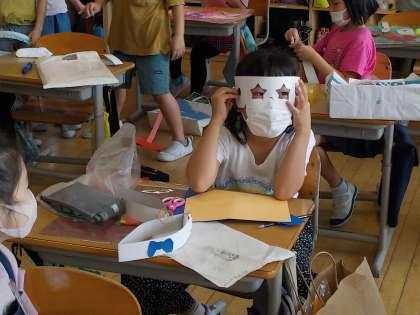 図画工作科では、「わっかでへんしん」の学習に取り組んでいます。学習発表会では、作った作品を身に付けた姿を披露する予定です。どんな作品が仕上がるか楽しみですね。