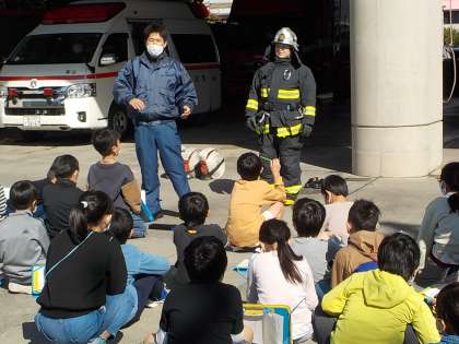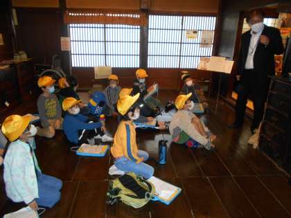 晴天の下、源ますの寿司ミュージアム、富山市消防局、富山市民俗民芸村へ社会見学に行ってきました。どの見学場所でも、様々なものに興味をもって学ぼうとする子供たちでした。