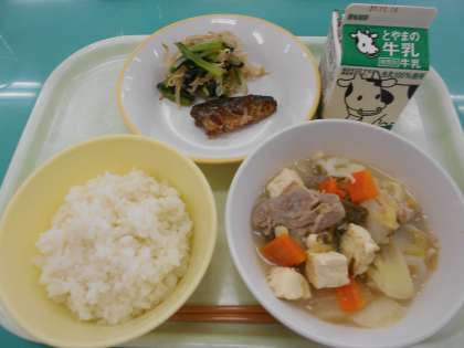本日の献立は、塩こうじ鍋、イワシの土佐煮、おひたし、です。