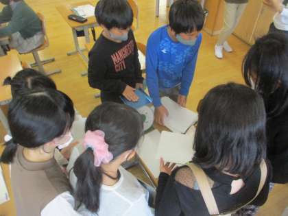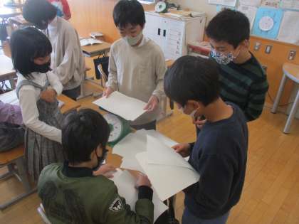 比例の性質を利用して、紙のおよその枚数を求めました。紙の重さや厚さを測ることで比例の性質が使えることに気付いていました。